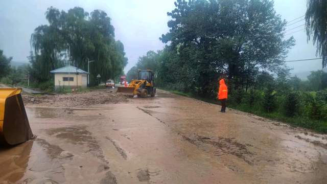 段领导班子结合现场情况,按照“先通后畅”的原则制定应急抢险现场处置方案,决定先用拦水带隔离灌溉渠泄水出口,再集中力量清理路面淤泥,保障半幅路面通车。所有人都做好了向水而行,冲锋在前的准备,迅速投入到抢通抢险的战斗中。他们有的开着机械奋力铲除路面泥石流,有的沿着路肩查看排水设施运行情况,及时排查潜在隐患,有的指挥社会车辆有序暂停。经过3个多小时的恶战,终于将半幅路面清理至可以通车状态。截至上午10时,崇信公路段共计出动车辆3台,机械4台,人员25人,清理塌方80立方,泥石流280立方。