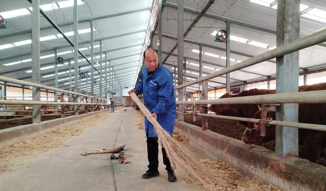 村里人说马孝忠养牛规模大,很牛,但更让人敬佩的是他的勤奋精神也很牛。作为一名省党代表、市人大代表、养殖基地的“总把头”的他,还是一名饲养员,他与村里的老伙计负责基地最大养殖棚的肉牛饲养。