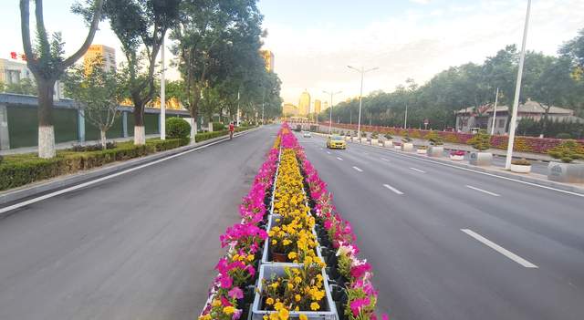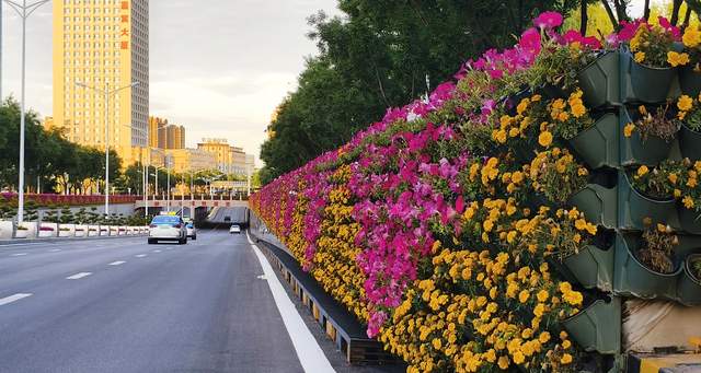 在具体实施过程中,园林工人们在东西大街、公园路设置立体花架101个、花柱30个、花箱48组240个,改造绿化带端头40处,栽植凤仙花、三角梅、天门冬等鲜花和绿植8.5万株;在高速东西出入口、崆峒大道下穿通道、柳湖路节点等区域栽植布设矮牵牛、孔雀草等花卉45万株,让道路沿线成为鲜花的海洋。同时,这些立体绿化元素的加入,不仅增加了绿化的层次感和观赏性,更让城市空间得到了充分利用,营造出“花团锦簇满街路”的绚丽景象。