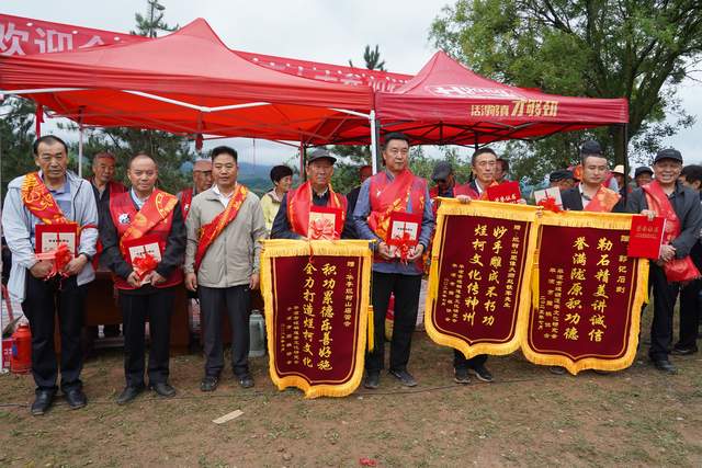 平凉市崆峒道学文化研究会、平凉市围棋协会为在本次塑像树碑过程中表现优秀的单位和个人烂柯山庙管会、赵铁军、马冯、王爱平、高越、李茸、郭德明、孟修善等颁发了锦旗、荣誉证书,赠送了纪念品。