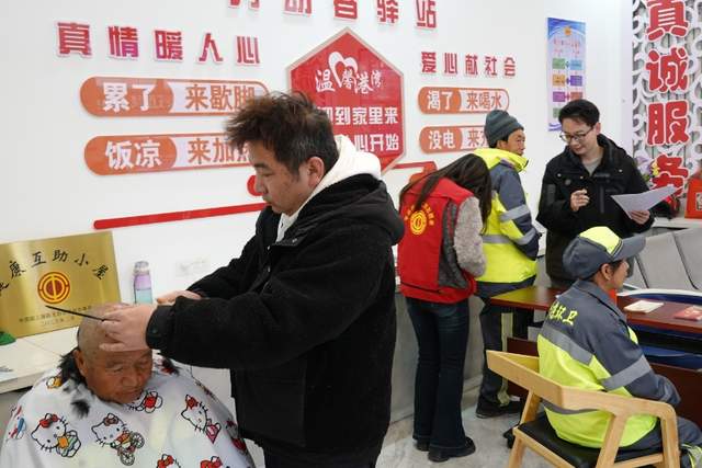 在泾川县东街社区驿站,“站长”不仅提供热水、指导充电,还联动公益组织为劳动者免费测血压、测血糖,送上爱心理发服务。在清脆的“咔嚓”声中,志愿者利落修剪出清爽发型,解决了户外劳动者的“头”等大事。同时,驿站里开展“面对面微宣讲”,发放宣传资料300余份,收集诉求12条,真正把服务做到了劳动者心坎上。