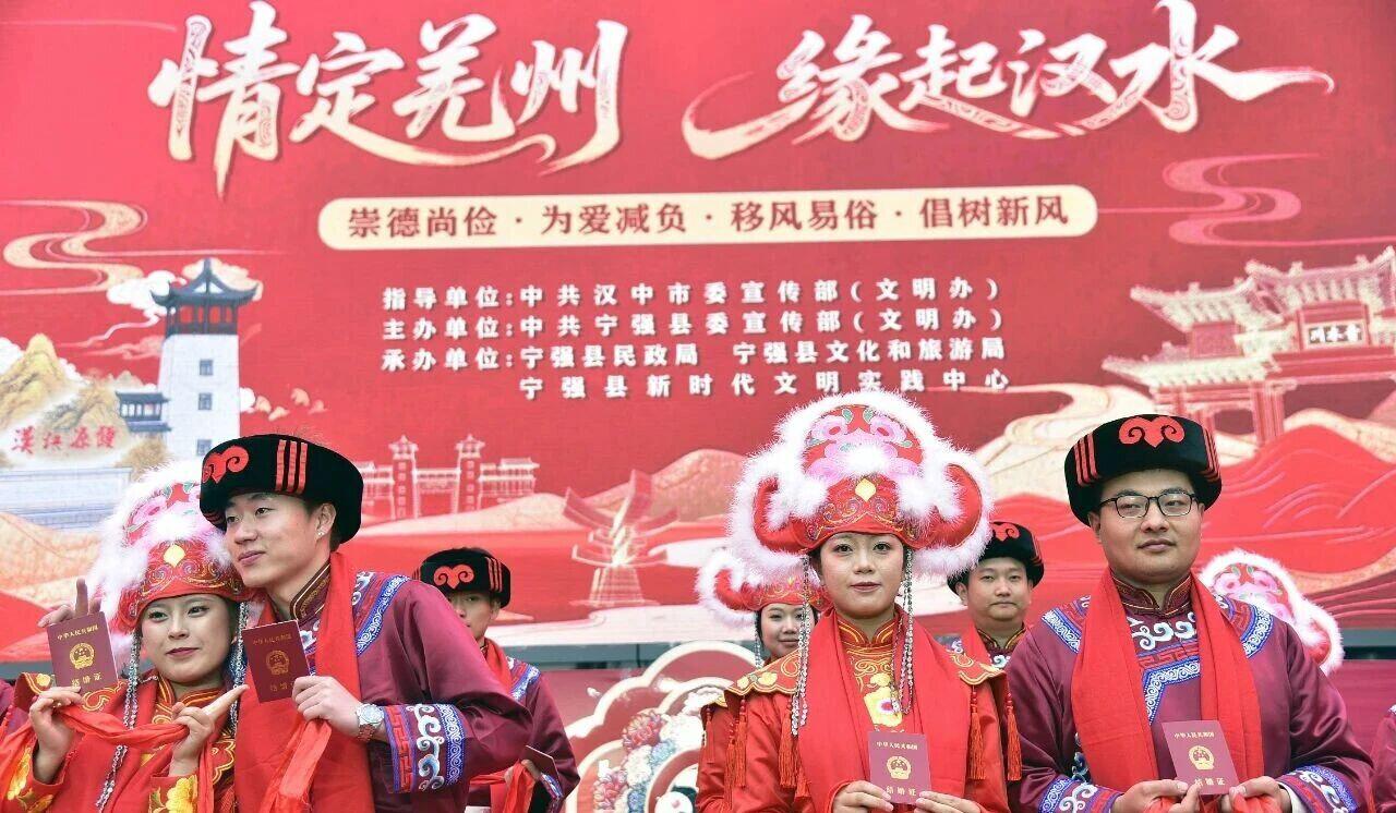 陕西宁强:羌族集体婚礼让新人在体验民俗中为爱减负