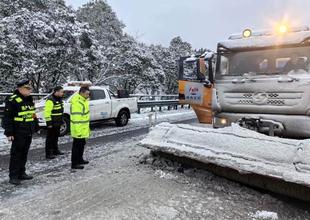 陕西交控汉宁分公司宁强管理所干部职工“以雪为令”迅速行动,采取在所辖路段采用“机械+人工”、“ 滚刷+先推后撒”梯次多重作业模式进行除雪作业,做到“雪下即清、 边清边撒”,对收费站出口匝道及收费站内广场进行人工除雪,保障车辆安全通行,及时分析研判道路通行条件,联合交警部门科学采取临时管制、提前分流,利用沿线电子情报板,及时向司乘发布路况信息,提醒司乘谨慎驾驶等措施确保道路安全。