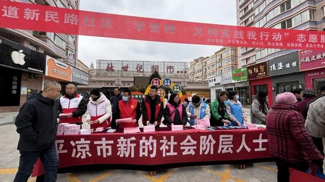 新传媒在线网讯 3月5日下午,平凉市新的社会阶层人士联谊会和崆峒区中街街道办事处所辖社区等16个单位联合开展“学雷锋·文明实践我行动”志愿者主题活动,平凉市新的社会阶层人士联谊会副会长赵杰、副会长兼秘书长丁海博出席。
