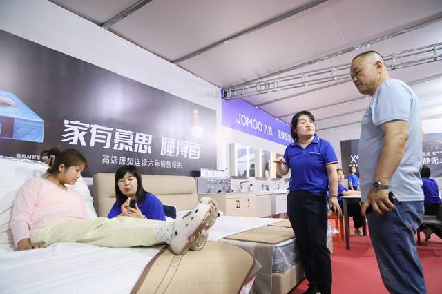 晚上7点,展馆内有不少市民在各个展厅咨询自己心仪的家电家居,在智能厨房区,工作人员正在演示语音控制的抽油烟机和自动烹饪机器人,围观市民纷纷拿出手机拍摄,时不时发出“太方便了”的感叹;家居软装区,AI智能床品成为了热门打卡点,不少家庭带着孩子在床上试坐,父母认真询问材质和价格,孩子则在一旁摆弄着展区的小摆件;促销活动区更是被围得水泄不通,“满减”“以旧换新”“限时折扣”的海报格外醒目,工作人员一边快速解答疑问,一边忙着登记订单,忙得满头大汗却笑意盈盈。