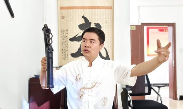 在崆峒武校古朴雅致的办公室里,阳光透过窗棂洒在案头的古籍上,容光焕发的王镖向记者娓娓道来崆峒武术的千年往事。这位身形矫健、目光炯炯的非遗传承人,指尖轻抚着一把古朴的崆峒大刀,仿佛在与历史对话。“崆峒武术是崆峒优秀传统文化的突出代表,要全面研究它,就得从源头的广成子文化说起。” 他的话语中,满是对这门古老技艺的敬畏与深情。