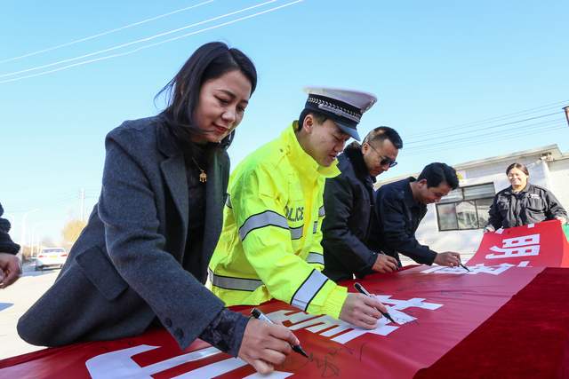活动中,交巡警大队宣传人员和驾校负责人组织全体教练和学员在印有“文明交通 携手共创”的条幅上签写自己的名字,以表达遵纪守法、平安出行、争做文明交通人的决心。随后,交巡警大队宣传人员通过发放宣传资料、面对面讲解的方式,围绕冬季安全行车特点,为驾校学员、教练讲解开车玩手机、接打电话、不系安全带等交通陋习的危害性,引导“准驾驶人”从“摸方向盘”的那一刻起就养成良好的驾车习惯,牢固树立“生命至上、安全第一”的理念,使学员从中切实感悟到“小陋习酿大祸”“小违法毁一生”的道理。同时,交巡警大队宣传人员还向教练员和学员讲解了驾乘车辆不系安全带、骑乘电动车和摩托车不戴安全头盔、无证驾驶、疲劳驾驶、超速超员、酒后驾驶等交通违法行为的危害和后果,警示大家要时刻紧绷安全弦,自觉养成安全驾驶的良好习惯,让交通安全从“准驾驶人”开“驶”。