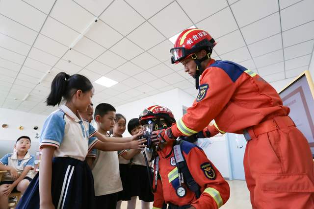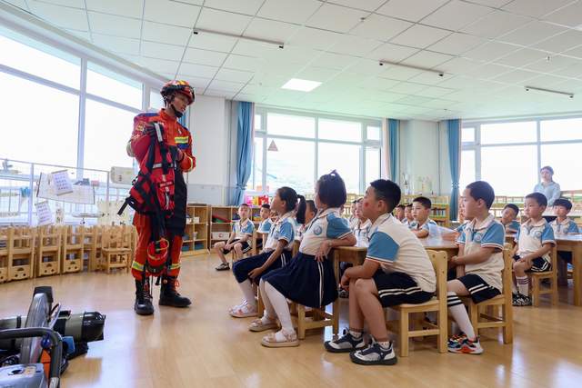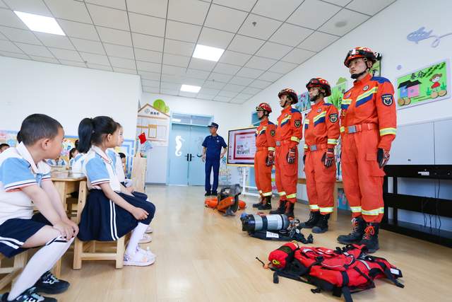 大队宣传人员结合幼儿的年龄特点,通过现场讲解、“手把手”教学、互动体验等方式为孩子们宣讲了消防安全与防溺水知识。随后,带领师幼切身观看各种消防器材、工具,让小朋友们直观真实地了解并接触。参观结束后,消防宣传人员还向老师演示了干粉灭火器、消火栓的正确使用方法,并与老师进行互动,“手把手”教老师如何使用,并让他们亲自操作,老师们都踊跃参与,纷纷按照正确的方法进行现场操作,切实提高了全体师幼的消防安全意识。