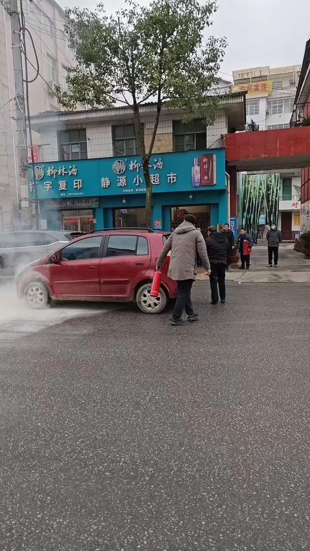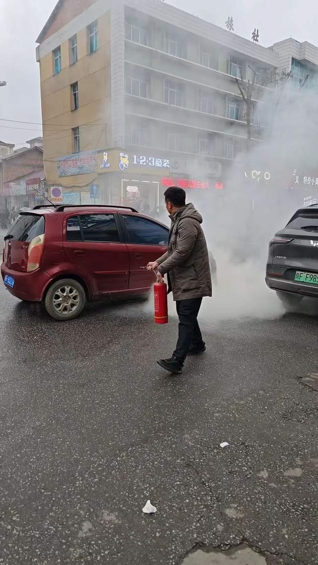 当时新华书店职工进行紧急消防演练,突然看到外面冒起浓烟,跑出去看见是电动小轿车在冒烟起火!新华书店职工迅速查看险情,第一时间从店内取出灭火器,对准火源根部按压喷射。采取“上下扫射”方式控制火势。短短3轮喷射后,明火被彻底扑灭,此时距起火仅过去2分40秒。与此同时,并组织其他职工疏散周边群众、拉起安全警戒线。