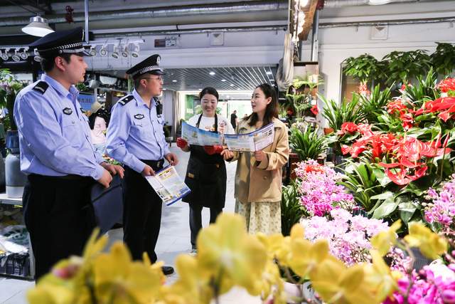 2023年5月16日,甘肃省平凉市公安局崆峒分局解放路派出所组织民警深入辖区花鸟市场开展实地走访和反电诈宣传活动。