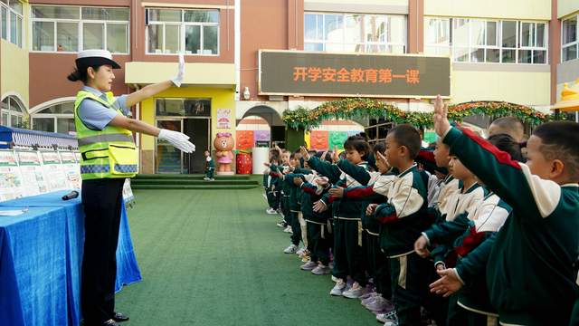 2023年8月28日,甘肃省平凉市公安局崆峒分局交巡警大队组织民辅警走进崆峒区实验幼儿园开展“开学安全教育第一课”交通安全宣讲进校园活动。