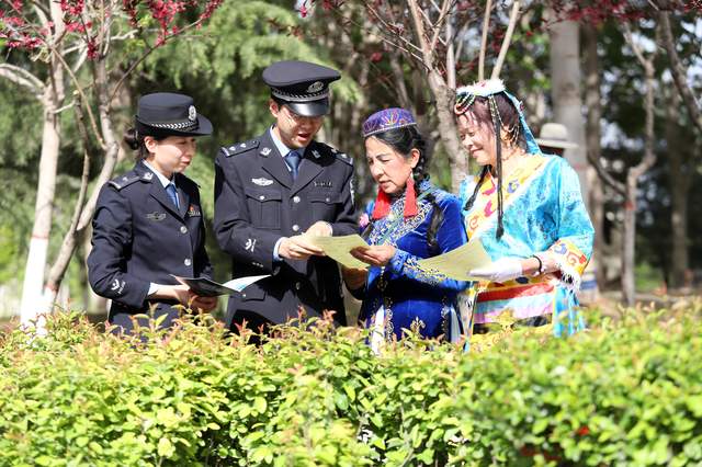 2023年4月25日,甘肃省平凉市公安局崆峒分局东郊派出所组织青年民警走进辖区公园,针对中老年人开展防范网络电信诈骗宣传活动,守护辖区群众“养老钱”。