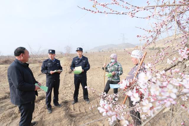 2023年3月20日,甘肃省平凉市公安局崆峒分局四十里铺派出所组织民辅警深入田间地头,走访农民并适时开展法治宣讲。