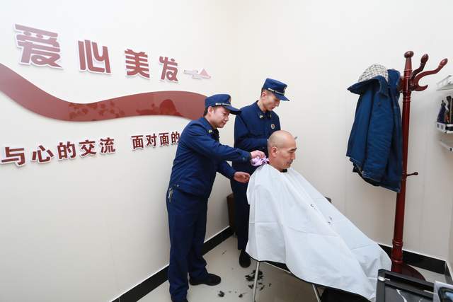 2023年2月21日,甘肃省平凉市崆峒区消防救援大队的消防员利用工作之余为独居老人免费理发。