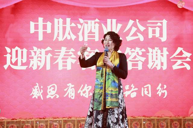 答谢会上,甘肃中肽酒商贸有限责任公司总经理王静登台致辞,向长期支持的新老客户致以诚挚感谢和新春祝福,回顾了双方携手共赢的发展历程,分享了依托平凉本土产业优势打造特色佳酿的匠心之路,并正式发布新品酒,介绍其酿造工艺与特色,承诺将持续坚守品质初心,以更优质的产品和服务回馈客户,深化合作、共拓市场新机遇。