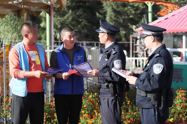 新传媒在线网讯(郑兵 张镜镜)中秋、国庆“双节”临近,为全面筑牢景区安全防线,9月24日,平凉市公安局崆峒分局崆峒山派出所组织民警深入崆峒古镇旅游景区,同步开展游乐设施专项治安巡查与反电诈宣传,为即将到来的旅游高峰保驾护航。