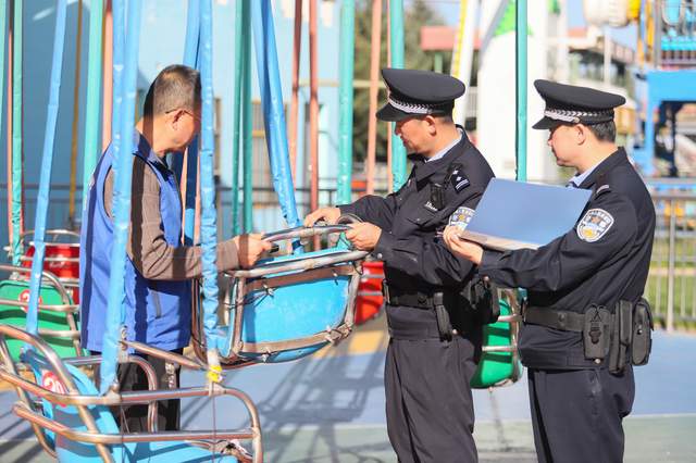 在游乐设施巡查环节,民警聚焦过山车、旋转木马等热门设备,逐一核查日常维护记录、安全检验合格证明,细致检查安全带、防护栏等关键部位牢固性,并现场询问运营方应急处置流程,对发现的细微隐患当场提出整改建议,要求限期闭环。