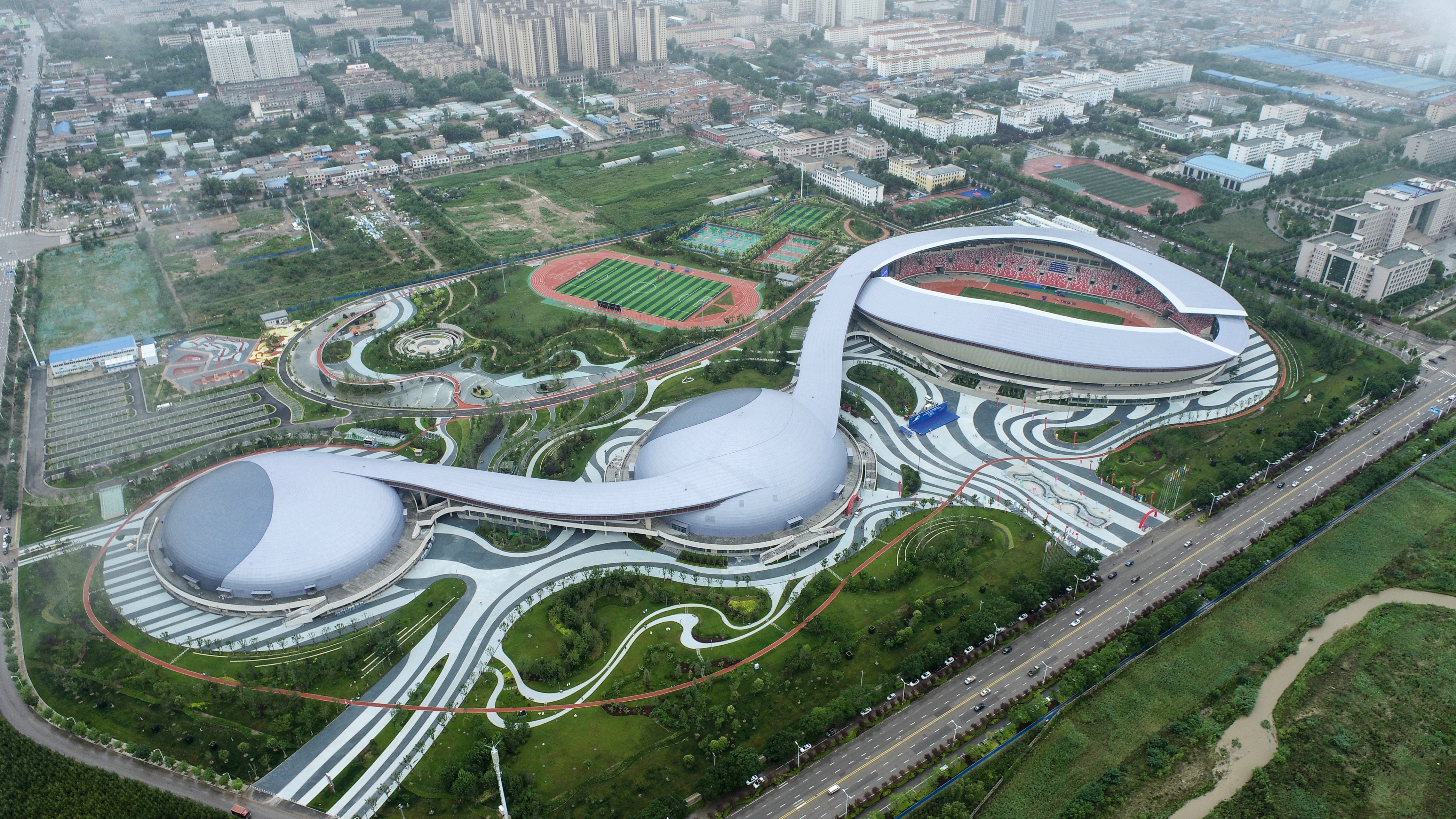 新传媒在线网讯(郑兵摄影报道)7月29日,总投资16.10亿元的平凉市体育运动公园全面竣工并正式向市民群众开放。体育场、体育馆、游泳馆连在一起,从空中鸟瞰,像极了一枚中国古代的玉如意,蔚为壮观。