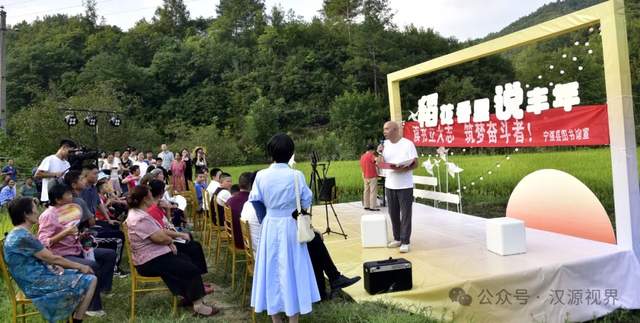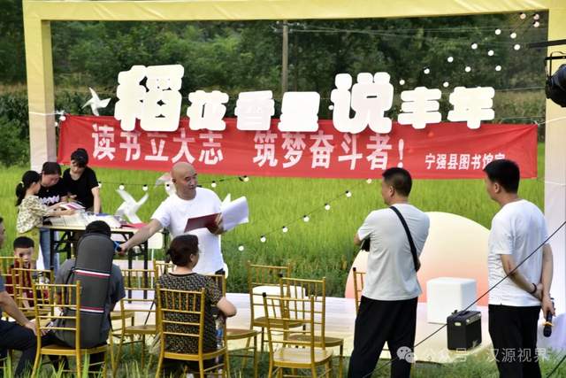 新传媒在线网讯(黎德华)8月22日,由陕西省宁强县新时代文明实践中心、县文学艺术界联合会主办,县新闻出版局、县宣传文化中心、县图书馆、汉源街道新时代文明实践所、汉中晟之丰农业科技有限公司协办的“稻花香里说丰年”田园朗诵会暨新时代文明实践宣讲活动在汉源街道办黄坝驿村金色稻田举行。