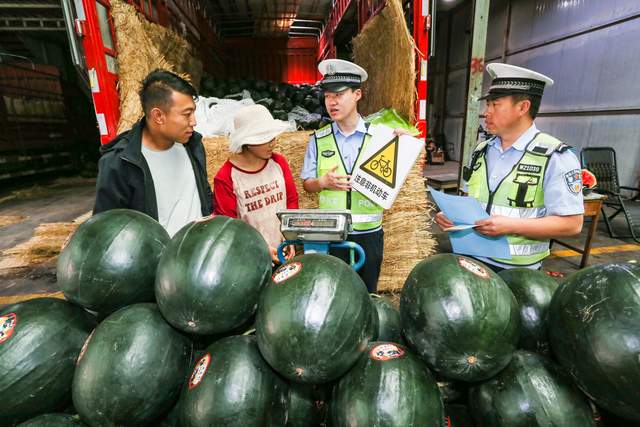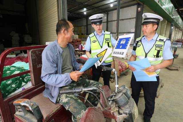 "张大姐,您这电动三轮车装货时可得注意,不能占用主干道卸货啊!"民警一边帮商户张大姐整理货物,一边耐心提醒。张大姐笑着回应:"以前总觉得就停一会儿没事,听您这么一说,以后可得注意,安全才是第一位的。"活动现场,民警辅警针对蔬菜水果批发市场车辆进出频繁、交通流量大、商户及从业人员交通安全意识相对薄弱等特点,通过发放宣传资料、面对面讲解、播放警示视频等方式,开展宣传教育。