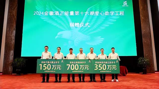 据悉,7月19日,2024金徽酒正能量第十六期爱心助学工程启动仪式在金徽生态酿酒园举行,宣布今年捐赠1200万元爱心助学金。