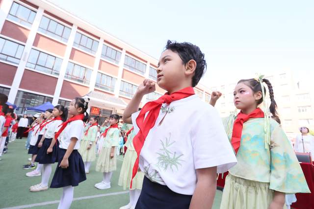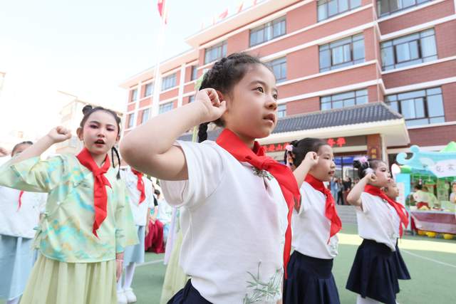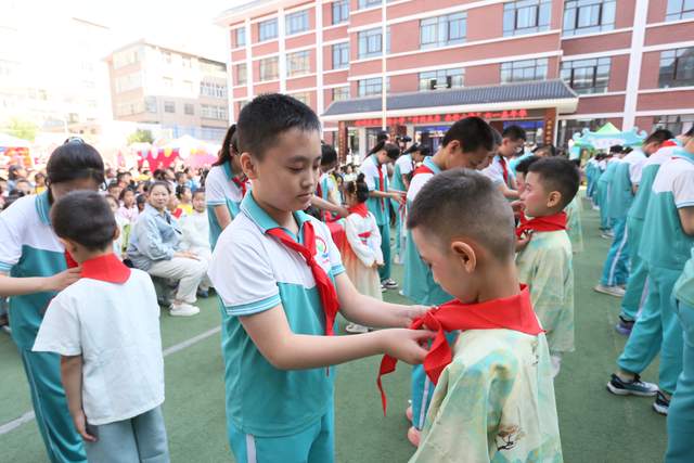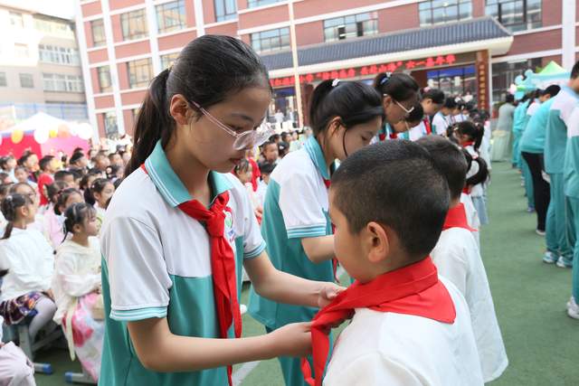 新传媒在线网讯(郑兵 张镜镜)5月28日,平凉市崆峒区红旗街小学在“六一”儿童节到来之际举行一年级少先队入队仪式。在庄严的队歌声中,68名一年级同学光荣地加入了中国少年先锋队,戴上了期盼已久的红领巾,正式成为少先队员。