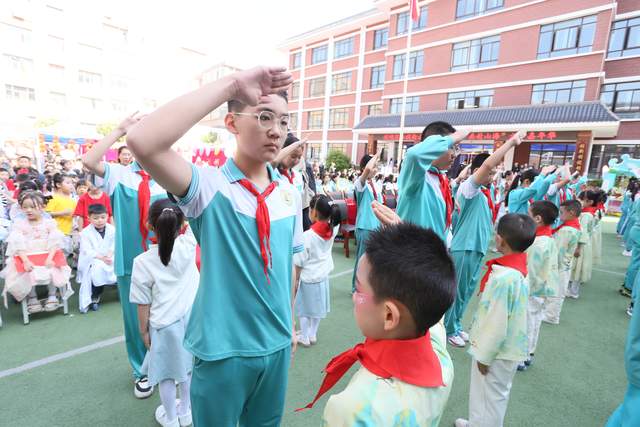 仪式上,崆峒区红旗街小学党支部书记、少工委主任朱蕾宣读组建一年级少先队组织的决定,并宣布新队员名单,高年级的优秀少先队员代表为新队员佩戴红领巾,并互敬队礼。全体新队员在队旗下庄严宣誓,铿锵有力的誓言展现了他们争做优秀少先队员的决心。随后,仪式上还为新建中队授旗并颁发聘书,并对25名“优秀中队干部”、4名“优秀大队干部”、4名“优秀学生会干部”8个“优秀中队”进行表彰。