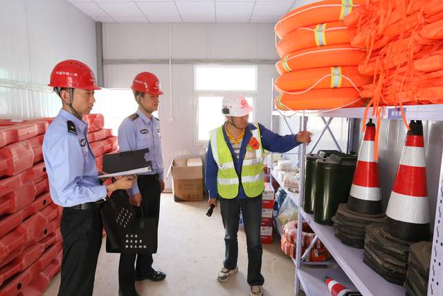 活动中,民警对施工现场的特种设备运行、特种作业操作以及安全防护措施落实情况进行了细致检查。针对现场航吊、车吊、旋挖等大型特种设备,民警强调作业人员必须持证上岗,并严格按照操作规程作业,杜绝违规操作引发安全事故。对于工地的防汛、防暑物资储备情况民警进行了仔细检查,要求施工方密切关注天气变化,做好极端天气应对准备,保障施工人员生命安全。治安防范也是此次指导帮扶的重点。民警针对工地材料设备易被盗的问题,与施工方共同探讨解决方案。指导施工方完善监控系统,对工地重点区域实现全覆盖,消除监控盲区;合理布置照明设施,确保夜间施工现场明亮无死角,增加不法分子作案难度。